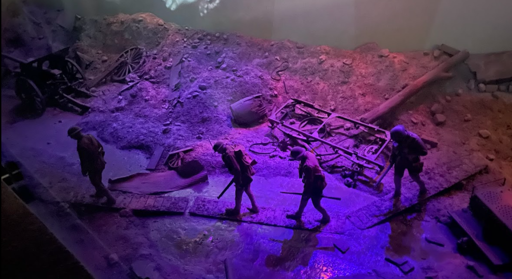 Below depicted what a dark trench war it was. There were many exhibits set up to help understand what a gruesome place it was.