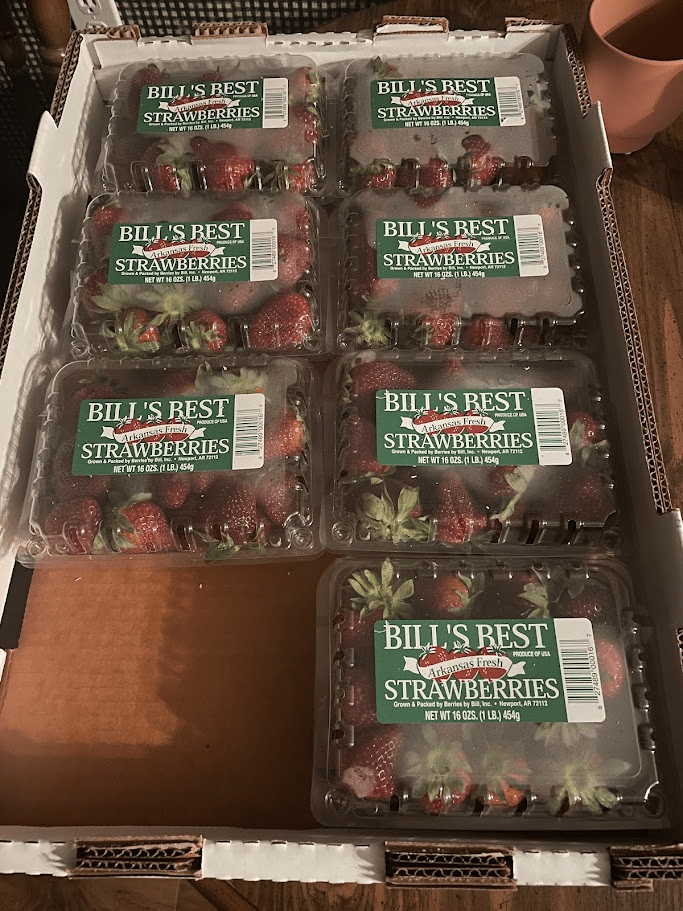 On our way back to Dustin’s house, we had to go through Bald Knob. That was just entirely too close to Newport, AR (where I grew up), to not stop and grab some strawberries! They had just started picking them on that Thursday (this was Saturday!) So they were super fresh, and I have already eaten way too many of them!